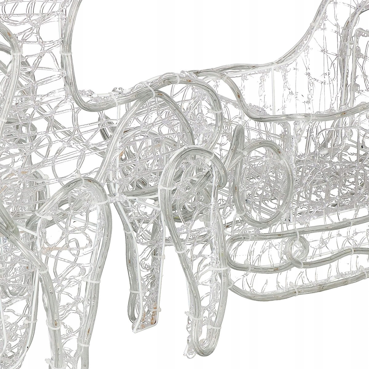 Суцільне, гнучкепокриття легке коло має товщину майже 9 мм, а рейтинг IP44,є параметром, який вказує на те, що ви можете безперешкодно розмістити світлодіодного північного оленя як удома, так і за його межами — у саду, на терасі, балконі. До комплекту також входять металеві селери, за допомогою яких можна прикріпити оленів та сани до землі. Стабільна металева конструкція,забезпечує незмінну форму монтажу.