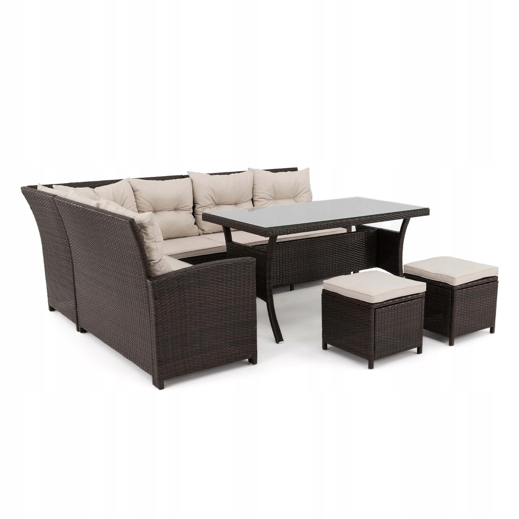 - Комплект із 6 предметів, що складається з диванів, що утворюють кут, великого столу та двох пуфів