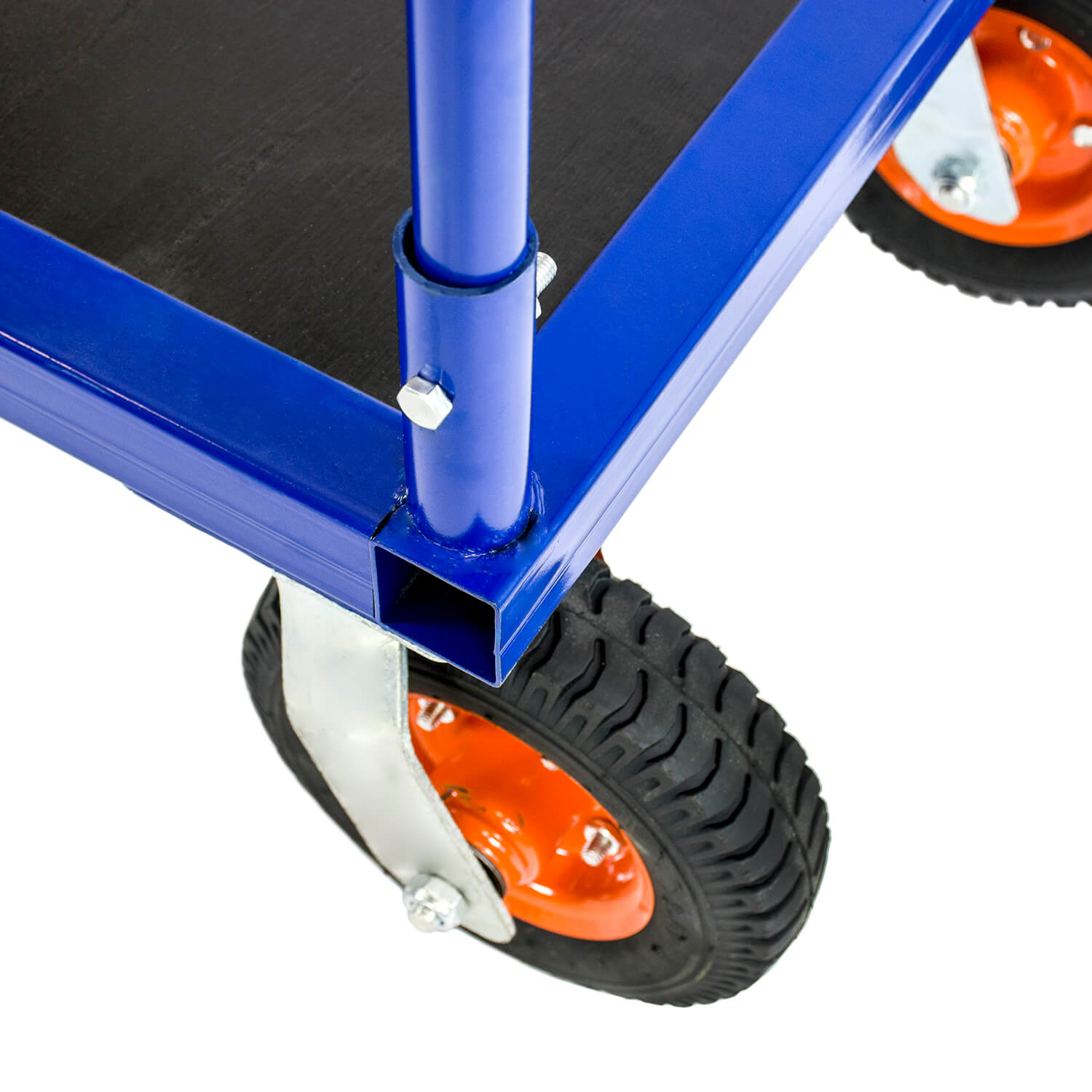 Візок добре працює на складах і в цехах, але також полегшить роботу вдома або в саду. Він відмінно підійде для транспортування важких пакетів і предметів, а міцна конструкція забезпечує комфорт і безпеку при транспортуванні. Колеса оптимального розміру з протектором забезпечують відмінне зчеплення з дорогою, незалежно від поверхні.