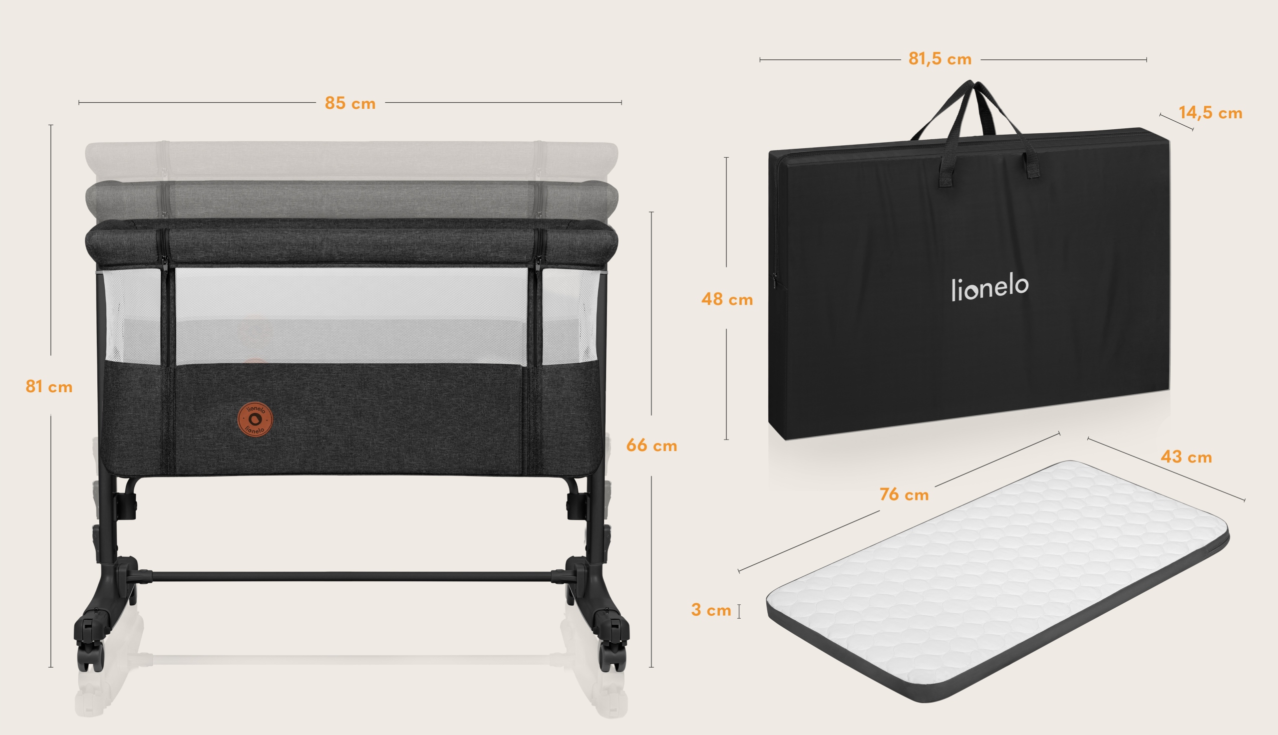 Ліжечко Lionelo Aurora 3 в 1 - це спальне ліжечко, окремо стояче ліжечко та колиска одночасно. Плавне регулювання висоти і можливість змінювати довжину ніжок дозволяють легко підлаштувати їх під висоту вашого ліжка, і завдяки цьому ваш малюк буде у вас під рукою, зберігаючи спальне місце для вас обох.
